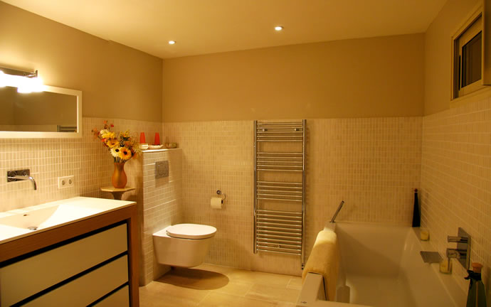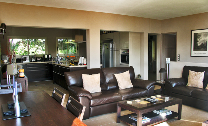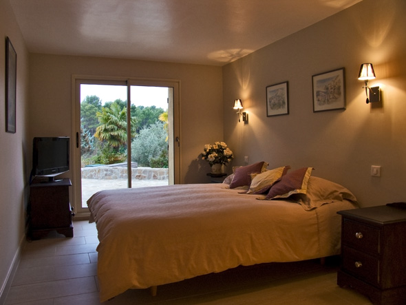 The main house is approximately 160mē in size laid out over two floors and was the last of the buildings to be renovated. The layout of the villa is classically Provence in nature: the living accommodation is located on the upper floor, whilst the ground floor contains the master and main guest bedrooms together with a spacious utility and laundry area with wine cave. The upper floor living area was designed to take full advantage of the light and views, and the open plan design offers the feeling of contemporary spacious living. The neighbouring fields and vineyards are readily visible from both the living salon area and the contemporary American-style kitchen. There are two additional rooms on the upper floor which have been flexibly designed so that they can be used either as bedrooms, offices or separate entertainment rooms. The lower floor bedrooms both look out conveniently on to the swimming pool and provide a cool retreat during the summer. There is an underfloor radiant heating system and double glazing throughout, broadband internet cabling in key rooms, satellite TV connections to both floors. Large terraces overlook the enclosed grounds which are made secure with automatic gates and an intercom entry system.